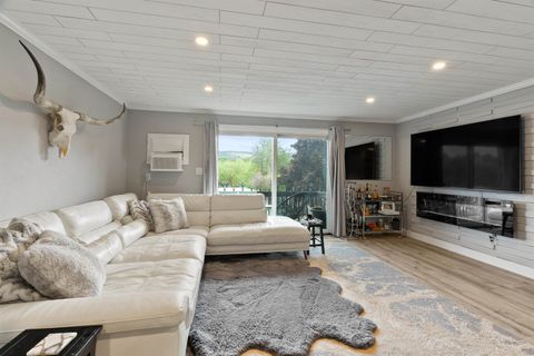 This impeccably updated and furnished 1-bedroom, ¾-bath 2nd floor condominium offers a blend of comfort, style, and functionality. The thoughtfully designed floor plan maximizes space and flow, beginning with a remodeled kitchen featuring striking tilework, modern finishes, and seamless integration into the living area. The inviting living space is enhanced by custom shiplap walls and an electric fireplace, creating cozy ambiance. The updated bathroom boasts contemporary fixtures and a clean, refreshed design, contributing to the overall modern aesthetic. Enjoy the convenience of a low-maintenance lifestyle in a location that offers a wealth of outdoor amenities. From your back deck, take in the spectacular Liberty Lake 4th of July fireworks, stroll to the nearby private sand beach, swim in the pool or launch a kayak from the boat docks for a peaceful day on the water. Whether you're seeking a primary residence, vacation retreat, or investment opportunity, this condo is a smart choice. View Today!
