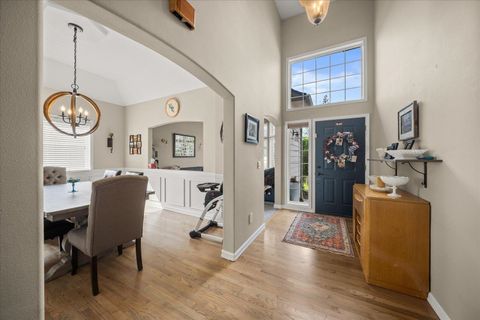 Welcome to this well-maintained residence in the Blackhawk neighborhood. This home features an updated kitchen with quartz countertops, a glass tile backsplash, and stainless-steel appliances. Formal living and dining rooms offer cathedral ceilings for added space and luxury. All bathrooms, including the primary suite, have been tastefully updated. Throughout the entire house, enjoy the convenience of a fully functioning surround sound system, with speakers in the main floor family room and in-wall speakers in the primary bedroom. New carpet and LVP flooring have been installed, along with a new roof in 2022, and a new water heater and water softener. Outside, the fully landscaped and fenced backyard offers a private retreat. The extra-long three-bay garage is wired for 220V power, providing ample space for vehicles and storage. Located minutes away from grocery stores and local dining options. Schedule your showing today to experience the best of Blackhawk living.