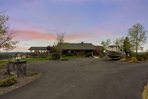 Exceptional estate on 30 private acres (which can be divided into three 10 acre parcels!!!) featuring a sport court, 60x40 shop, 5-car garage, and an additional garage for outdoor gear or recreational toys. Designed by architect Jon Saylor, this custom home offers nearly 360° views, 30-ft ceilings and gorgeous woodwork. The gourmet kitchen includes two refrigerators, a Wolf range, and opens to a 22-seat dining area. Enjoy a theater/game room, wrap-around deck, expansive patio with outdoor shower and bathroom, dual laundry rooms, a cement safe room. Featured in NW Homes & Lifestyle, this is a rare and refined Pacific Northwest retreat. Don't miss all the current updates and wow factors"”see associated documents for full details. You literally feel like you are on top of the world.