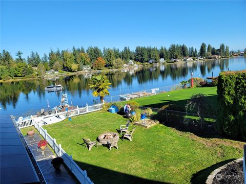 Amazing lake front home with 4+bed/4+ baths on Lake Serene. Private peaceful lot with a detached 2 car garage w/ a permitted studio/den above. Additional permitted detached 400sqft 1B/.75B ADU cottage. Both of these units can be rented/VRBO and have .75 baths and stackable W/D each. Summertime fun awaits you! Enjoy kayaking, SUP from your 50ft lakefront home, personal dock w/ slide. This home offers 2,256 sqft of main living space on 2 levels with wrap around deck overlooking peaceful lake. Home sits down a long private driveway with plenty of parking and manicured grounds. This home offers a remodeled kitchen, fully finished daylight basement w/separate entry. Enjoy Peaceful 180-degree views from every corner of this one-of-a-kind home.