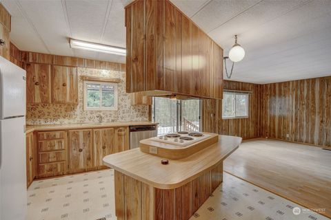 This great home is situated in a prime space within the community. It's situated on a corner lot, and has parking for two cars with a covered porch. This is a two bed and two bath home. Nice clean interior, open concept living, dining and kitchen. The home has large living and dining areas, ample storage, a double oven, with stovetop in the center island and newer appliances. Wood paneling throughout the home. The primary bedroom is large and has double closets and a bathroom with a newly remodeled shower stall. The second bedroom' shares access to the hallway bathroom. Private backyard with one large and one small storage shed. The roof is only four years old.