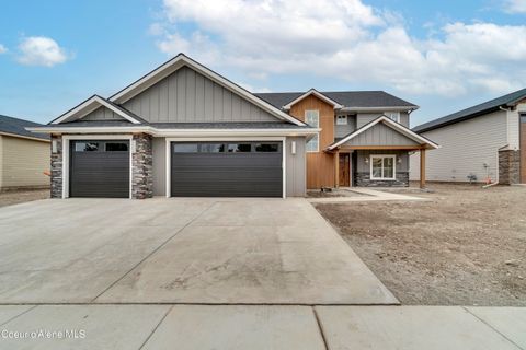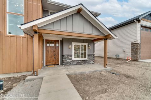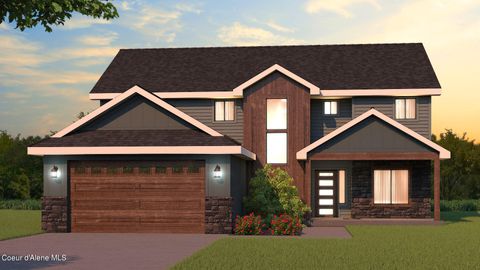 Completion date January 2024! This 2 story home, currently under construction, features 4 bedrooms, 2.5 baths plus a den, loft, 3 car garage covered porch and covered patio. The great room has 18' ceilings, Astria Gemini DLX fireplace surrounded by cultured masonry stone that ends upward to a beautiful mantle, then the luxury vinyl plank flooring continues into the gourmet kitchen with a pantry, upgraded G.E. stainless steel appliance package (upgraded microwave and slide in range) , granite/quartz countertops, large kitchen island with eating bar, Moen fixtures, soft close custom designed cabinets, and the 6' wide kitchen window lets in lots of natural light. Also located on the main floor is the primary suite with a private bath, dual vanity sinks, shower with full tiled walls including corner shelves, linen closet and generous walk-in closet. The laundry room, den and ½ bath round it out for true main floor living. Upstairs you will find 3 more bedrooms, a full sized bath with linen closet and a large loft over 260 sf. The exterior is quite charming with a covered porch and entryway, stained and lacquered knotty alder door, Pella windows, fiber cement lap siding, accented with masonry wainscot and rough sawn timbers. Full front yard landscaping with hydroseed, sprinklers, curbing, rain gutters and more. In this brand new subdivision, The Fields, you are minutes from Honeysuckle Beach, Hayden Lake Country Club, Avondale Golf Course, English Point Recreation Area, parks, retail, restaurants, schools, and more.