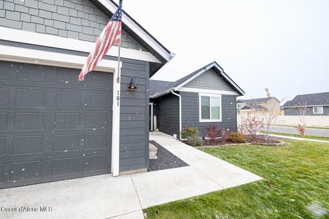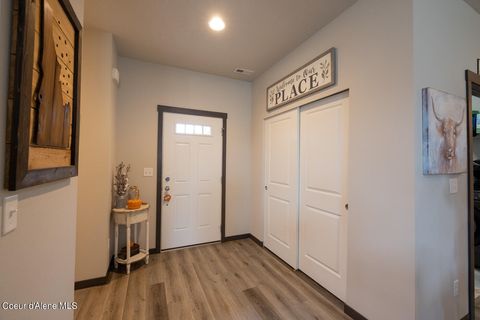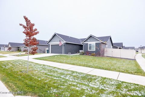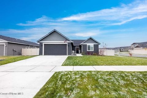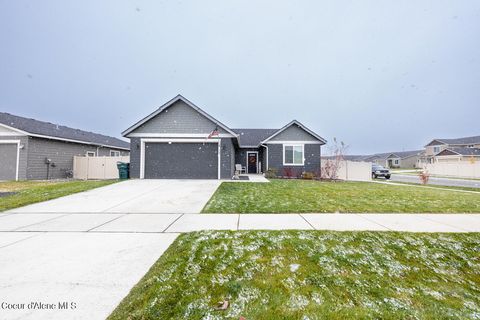 Welcome to this centrally located 4-bedroom, 2.5-bathroom home in Post Falls, conveniently nestled between Coeur d'Alene and Spokane. The property boasts practical features such as LVP flooring, quartz countertops, and stainless-steel gas appliances in the kitchen. With 9' ceilings and a walk-in pantry, the residence provides a spacious and functional living environment. The corner lot offers a private outdoor space with a patio for relaxation or entertaining. Experience a comfortable and convenient lifestyle in this Post Falls gem.