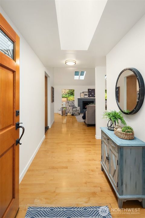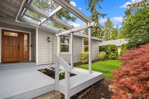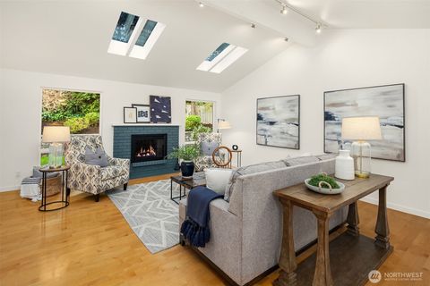 Inviting Light & Bright one-story home in a fabulous location! Oversized Great room offers stately fireplace, vaulted ceilings, 4 skylights, extensive hardwoods & wall of windows overlooking the private backyard. New carpet & Fresh interior paint. Remodeled Kitchen has slate floors, sleek stone countertops, stainless appl's & large island. Dining area surrounded by windows. Primary suite has vaulted ceilings & 3/4 bath. Versatile large bonus/flex rm is an ideal media/office/game rm w/Queen Size Murphy bed. Updated baths. Private backyard offers large patio, stone pathway, level lawn & backs to treed area for wonderful privacy. Gas heat & A/C. Bellevue schools, Close to MS, shopping, dining, Idylwood Park, Lk Samm & easy freeway access.