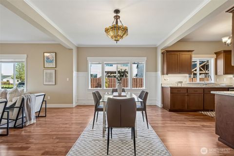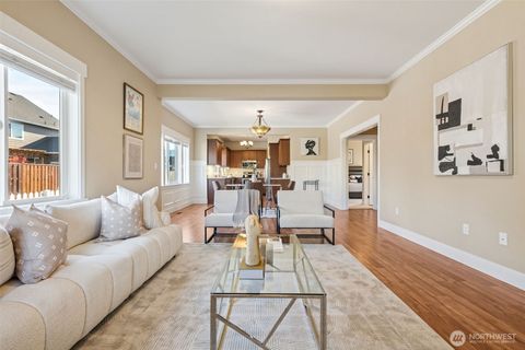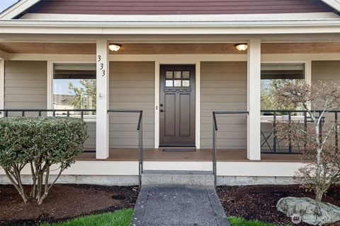 Welcome to this charming 2 bed, 2 bath cottage-style home in the heart of Enumclaw. With 1,230 sq ft of well-designed living space, this lightly lived-in home offers beautiful curb appeal and a perfect front porch ideal for morning coffee or evening relaxation. Inside, enjoy an open-concept layout with an upgraded kitchen featuring solid surface counters, and ample cabinetry. LVP flooring flows throughout the main spaces, with brand-new carpet in the primary suite, complete with walk-in closet and en-suite bath. The fully fenced side yard includes a sprinkler system for easy maintenance. Alley access leads to an attached 2-car garage. Stay comfortable year-round with a forced air furnace and efficient heat pump w/ AC. This one won't last!