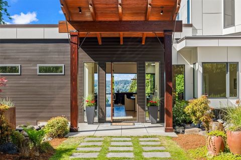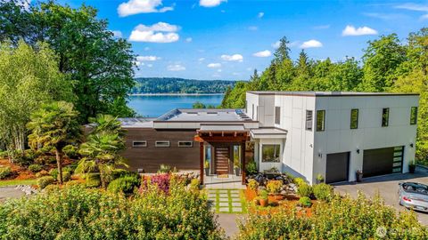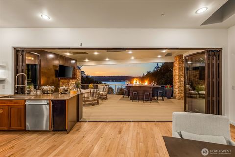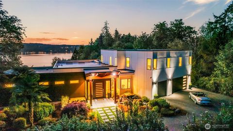 A modern marvel perched above Henderson Bay, this jaw-dropping estate spans 8.1 private acres where bold architecture and nature dance in perfect rhythm. Step through the grand, dramatic entry"”past tranquil fountains"”into a soaring great room that stuns at every angle. The 22-ft Nanawall vanishes to reveal sweeping water and Olympic mountain views, blurring indoor and outdoor living. Crafted for unforgettable gatherings, the 500 sf covered deck with fire table, built in BBQ, and TV invites celebration year-round. Inside, the live-edge island and hammered copper sink are sculptural centerpieces in a kitchen designed to impress. 5 bedrooms, 4 baths, office, media room and room to roam. Infinite sunsets. One-of-a-kind. Once in a lifetime!