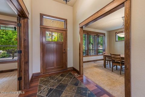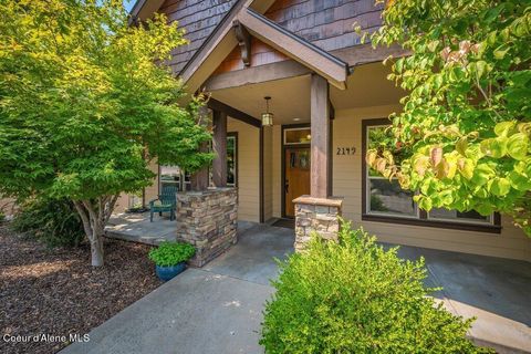 ENJOY SPECTACULAR SUNSET VIEWS from this beautiful custom home in one of northern Idaho's most sought after neighborhoods! Tons of year-round natural light beam through the vaulted main floor windows and expansive deck w/ natural gas BBQ hook-up. This is a quality-built home with upgrades throughout, including wood floors, granite countertops, gourmet kitchen w/ island, beverage nook, pantry, stone gas fireplace on both levels, large main floor primary bedroom walk-in closet and much more. Tons of storage inside and out include a huge utility/storage room in the basement, complete with washer/dryer hookups (in addition to the main floor laundry); 10'x10' shed in the back yard; and large 3-car garage with workbench and shelving. Private fenced back yard with a variety of raised planter boxes and mature landscaping. This is a must-see home!