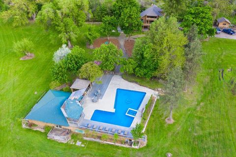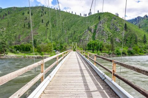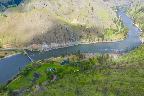 This privately owned Geothermal Hot Springs is quietly tucked away on 155 acres, 9 miles up Big Salmon River Road outside Riggins, Idaho. Drive across the single lane suspension bridge and the beautiful grounds will welcome you with the lush history this property is known for. The notorious estate includes a 3 story furnished 5700 sq. ft. lodge, a separate complex with three 1 bedroom/1 bath condos, a pool house with recreation room and sleeping room, plus an office with living quarters. Additional amenities include 1+ mile of Salmon River Frontage, Starlink Broadband Internet, a spring fed pond, an oversized garden area, a greenhouse, and multiple water rights. The wildlife is abundant on this unique parcel, and it is not uncommon to see elk, deer, and the occasional bear. Historically this property has been used for the mineral healing properties of the geothermal water. The property sits on the Salmon River, the River of No Return. It has year-round access with little to no snow.