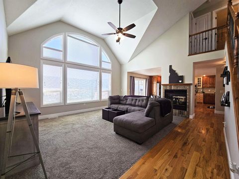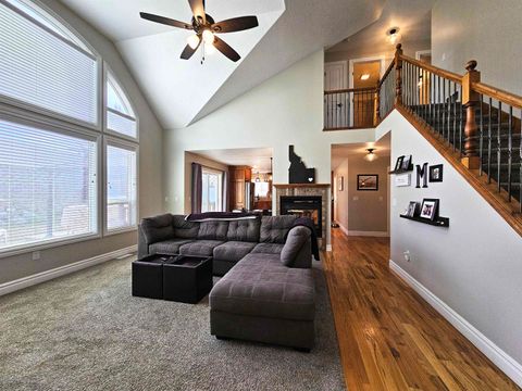 Unlike any other! This home perfectly pairs main floor living with tall bright rooms! The open floor plan invites you into a cheerful family room where tall windows allow natural light to warm the space. A well thought out main floor provides the convenience of one-level living by pairing the spacious primary suite, complete with a sizable walk-in closet and jetted tub, with a main floor laundry room right off the garage entrance. The chef's kitchen was built for delightful gatherings where a large quartz island and walk-in pantry provide an abundance of workspace and storage. Real hardwood floors and a see-through gas fireplace perfectly tie these gathering areas together. With 6 large bedrooms and 3 and a half baths this home has room for everyone and everything. The spacious garage even has an extra deep bay for that 4th vehicle or extra work space. Outside, you can enjoy privacy and year-round grilling from the covered back deck or sunset views from the front patio. Located in the most desirable neighborhood in Pocatello near endless hiking trails, the Highland Golf Course, and the Portneuf Wellness Complex. Convenient smart home features include an Ecobee thermostat, Chamberlain garage door openers, security system, lighting, outlets, and more! Sale includes all kitchen appliances, washer, dryer, water softener, and reverse osmosis purification system. New HVAC in 2021 and water heater in 2023. Call your favorite agent and schedule a showing today!
